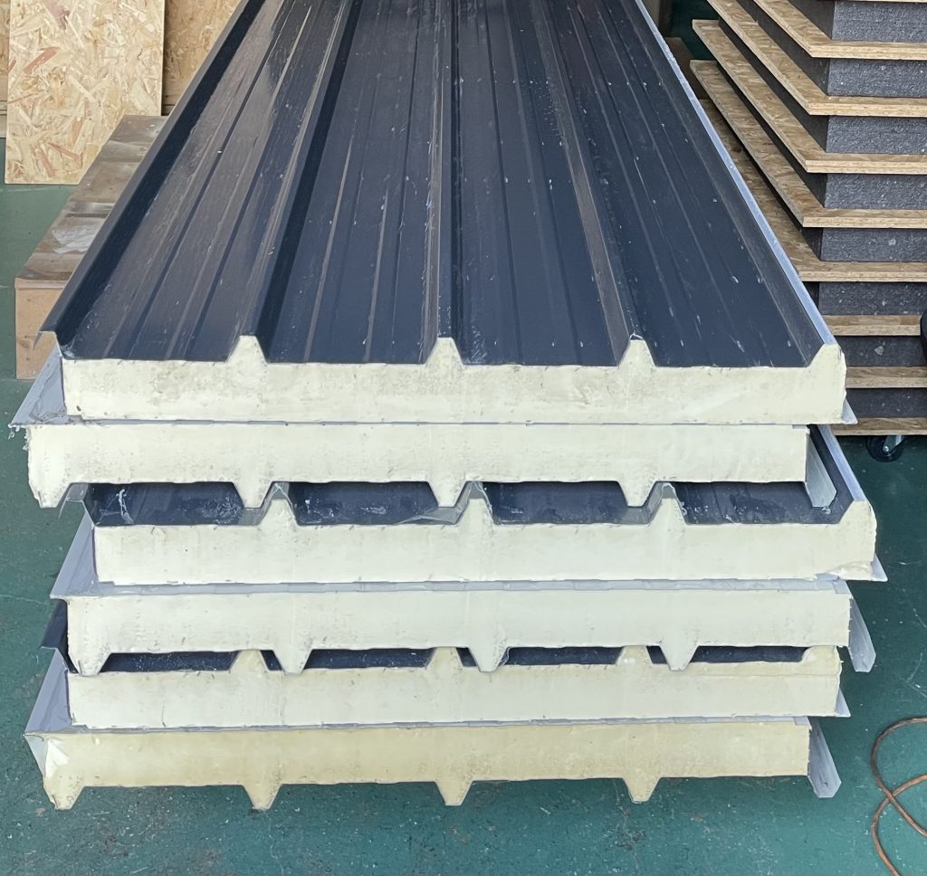 We DO NOT use SIP panels in our roofs. Our testing has shown that SIP panels cannot span roof areas unsupported without long term sagging and developing a permanent bow. Instead, we use insulated panels specifically engineered for roofing. These roofing panels require no internal timber support structure to try to prevent sagging and therefore have no large gaps between the insulation to cause cold bridging, these continuous insulation panels have an overall thickness of 120mm, have an impressively low U-value of just 0.26 W/m²K, come fully finished, feature an off-white interior surface and an anthracite exterior finish. Designed with an overlapping interlocking system and with the appropriate supplied sealants applied between the joints, they securely bolt to our SIP shell frame and to each other, using the bolts included in our fixing kit and can span room depths of up to 7 metres in one continuous panel making roof leaks a thing of the past. The off white interior of the panel makes a perfectly acceptable ceiling finish, or the roof can either be clad directly or if you want to put recessed lighting instead of surface mounted you can fix battens and clad (click and stick upvc will easiest) or plaster board.