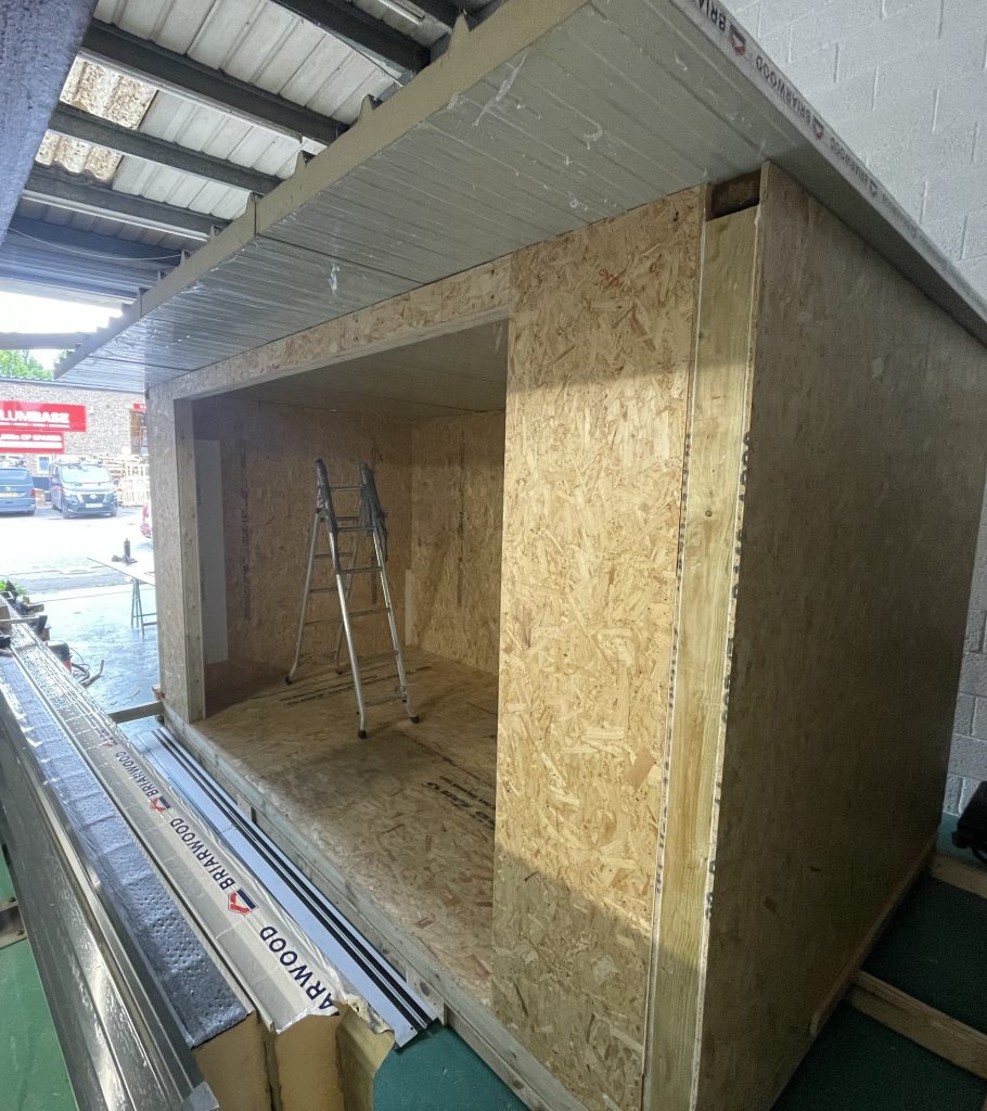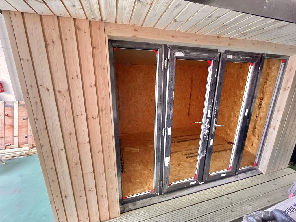 - Decking and separate mounting frame ( we DO NOT extend the floor SIP’s out to mount the decking, with the associated long term water penetration into the buildings flooring )