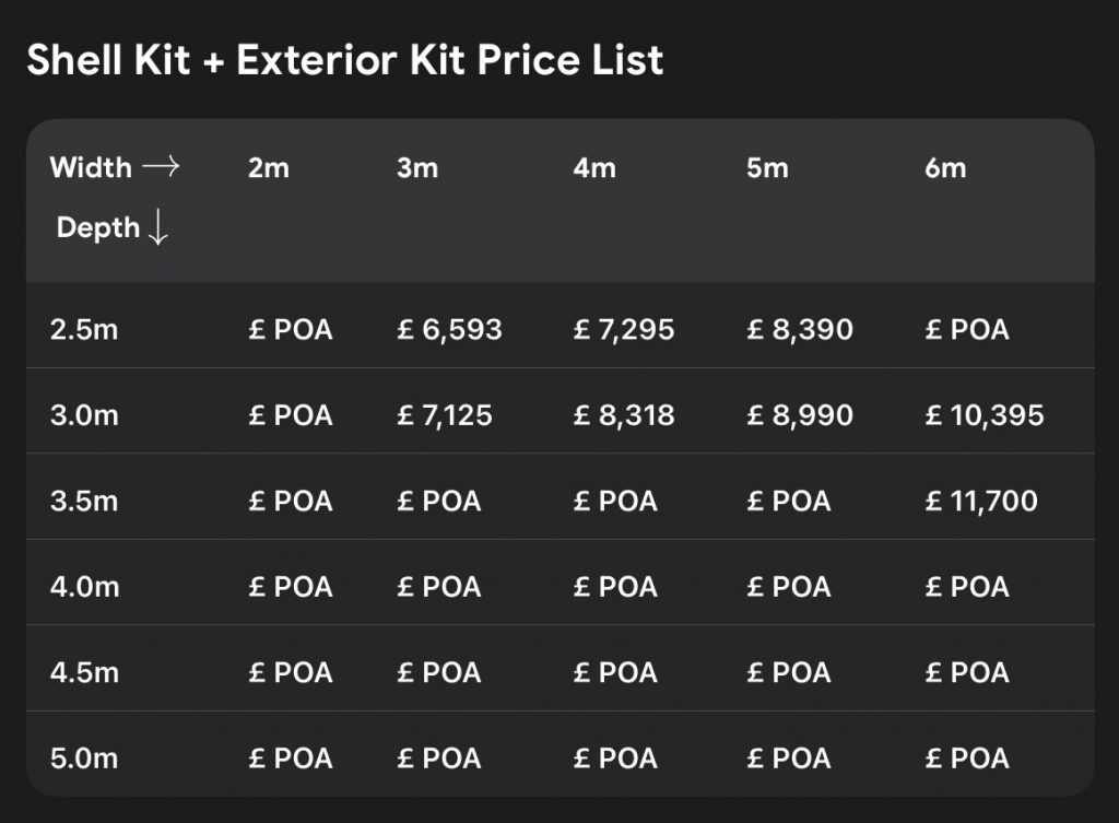 SHELL + EXTERIOR KIT PRICE